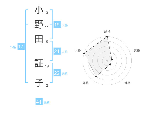 小野田 証子さんの外格は17画の4点!