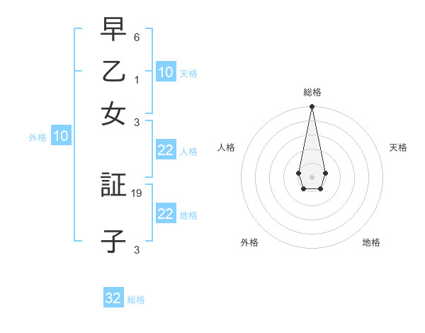 早乙女 証子さんを姓名の画数から五運を鑑定