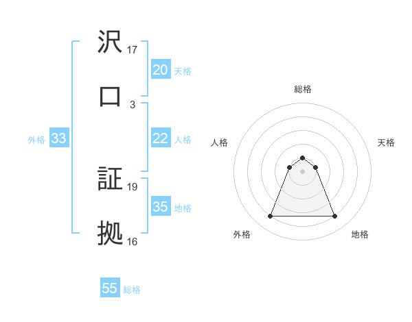 沢口 証拠さんの総格は55画の1点
