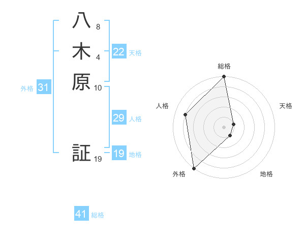 八木原 証さんの総格は41画の5点!
