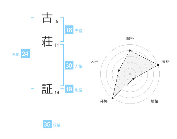 古荘 証さんを姓名の画数から五運を鑑定