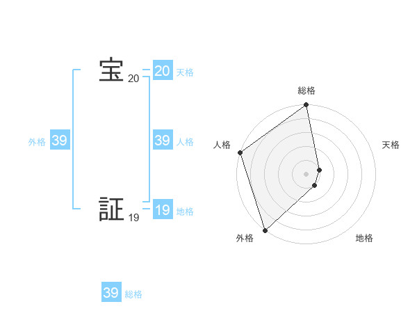 宝 証さんの外格は39画の5点!