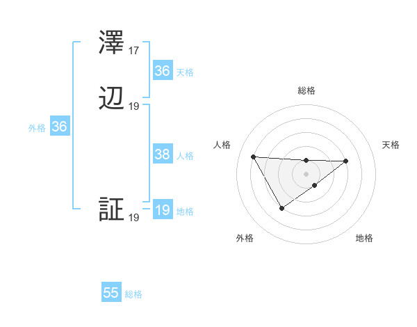 澤辺 証さんの総格は55画の1点!