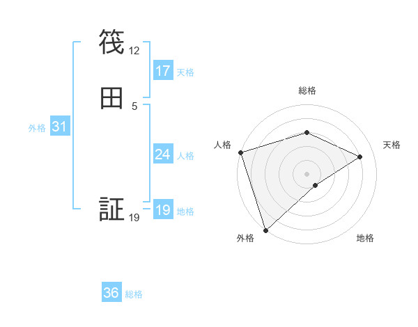筏田 証さんの天格は17画の4点!
