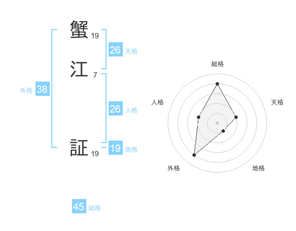 蟹江 証さんの総格は45画の4点!