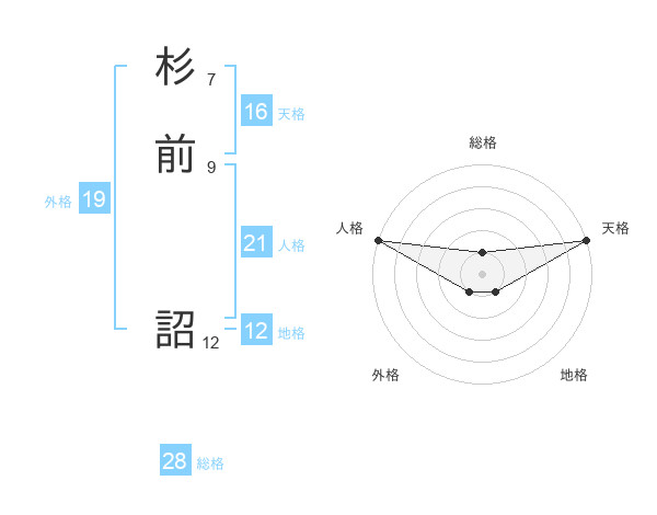 杉前 詔さんの天格は16画の5点!