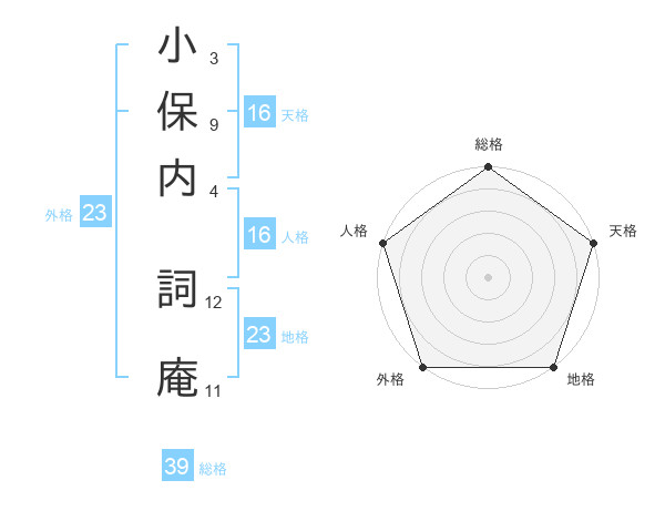 小保内 詞庵さんの総格は39画の5点