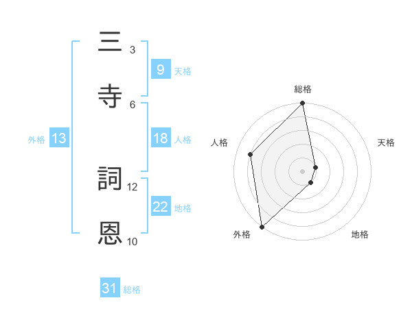 三寺 詞恩さんを姓名の画数から五運を鑑定