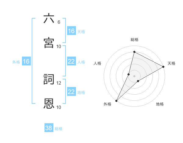 六宮 詞恩さんを姓名の画数から五運を鑑定
