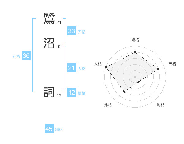 鷺沼 詞さんを姓名の画数から五運を鑑定