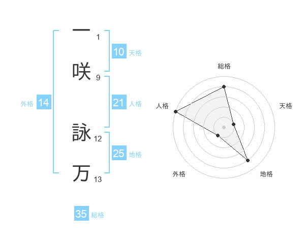 一咲 詠万さんの総格は35画の4点!