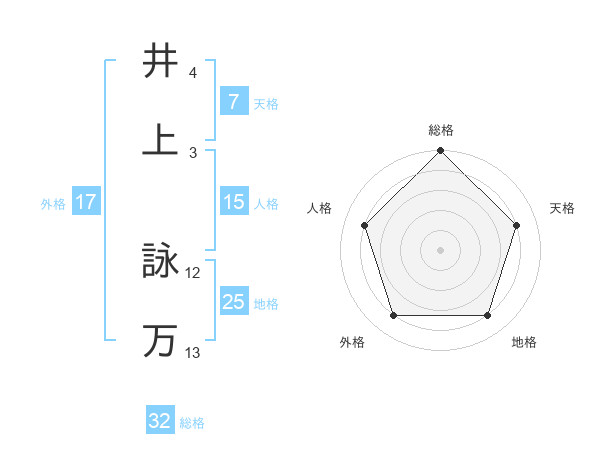 井上 詠万さんの総格は32画の5点!