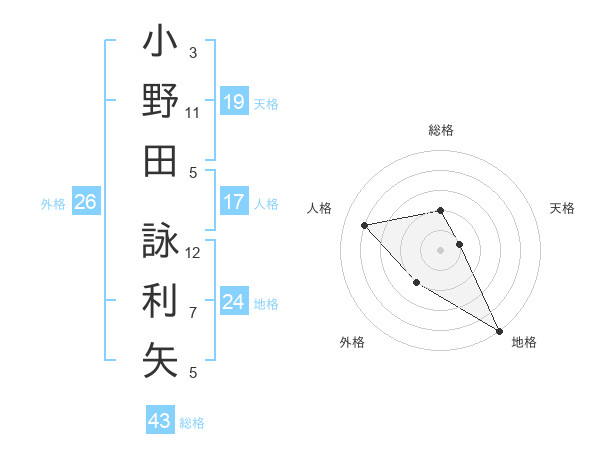 小野田 詠利矢さんを姓名の画数から五運を鑑定