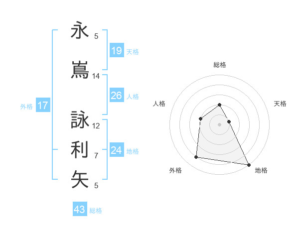永嶌 詠利矢さんを姓名の画数から五運を鑑定