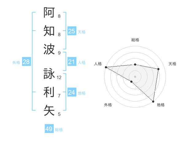 阿知波 詠利矢さんを姓名の画数から五運を鑑定