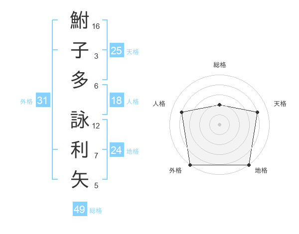 鮒子多 詠利矢さんを姓名の画数から五運を鑑定