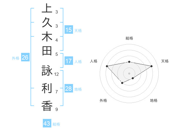 上久木田 詠利香さんの天格は15画の4点!