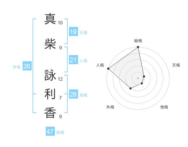 真柴 詠利香さんを姓名の画数から五運を鑑定