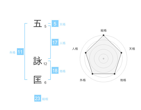 五 詠匡さんの総格は23画の5点!