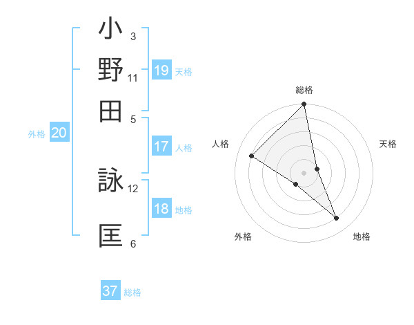 小野田 詠匡さんの総格は37画の5点!