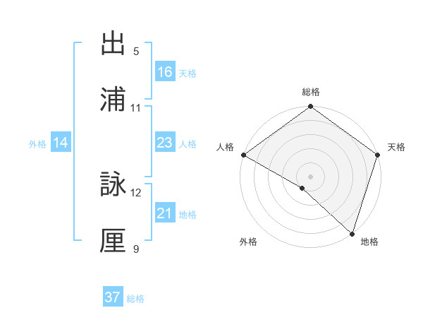 出浦 詠厘さんを姓名の画数から五運を鑑定