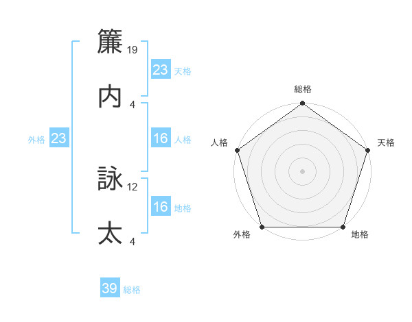 簾内 詠太さんを姓名の画数から五運を鑑定