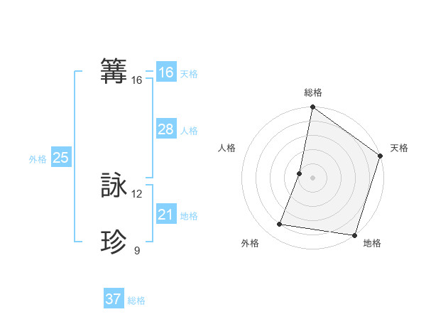 篝 詠珍さんの総格は37画の5点!
