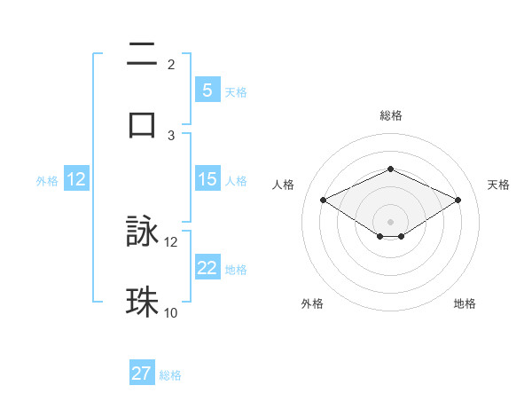 二口 詠珠さんの外格は12画の1点!