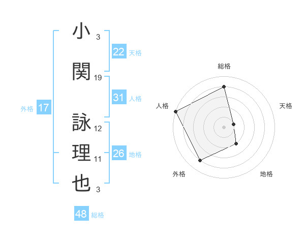 小関 詠理也さんを姓名の画数から五運を鑑定