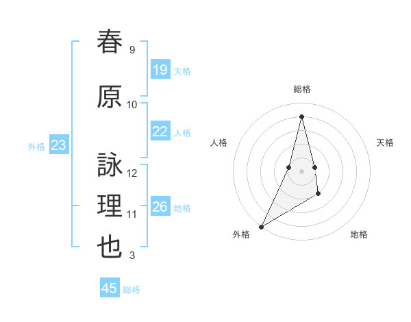 春原 詠理也さんの総格は45画の4点!