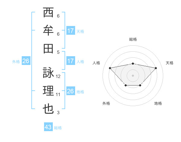 西牟田 詠理也さんを姓名の画数から五運を鑑定