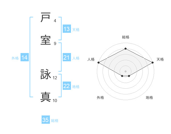 戸室 詠真さんの天格は13画の5点!