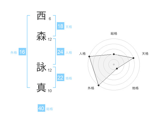 西森 詠真さんの総格は40画の2点!