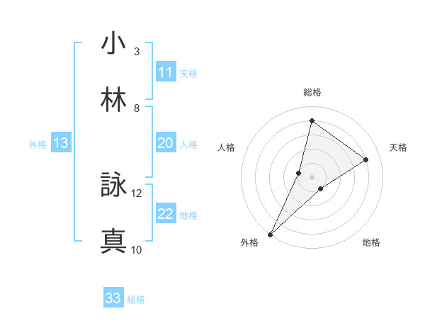 小林 詠真さんの総格は33画の4点!