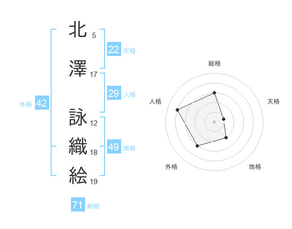 北澤 詠織絵さんを姓名の画数から五運を鑑定