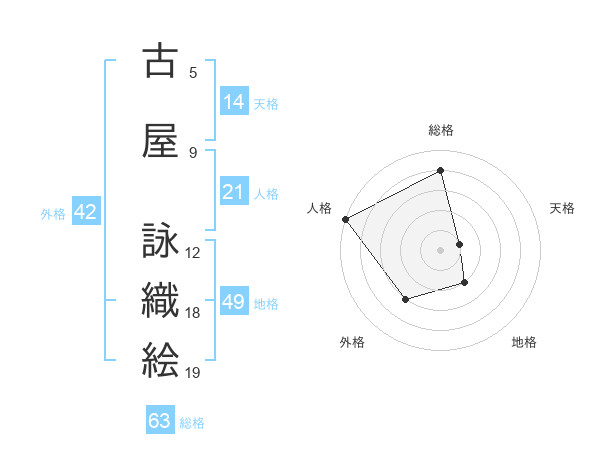 古屋 詠織絵さんを姓名の画数から五運を鑑定
