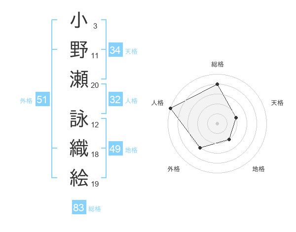 小野瀬 詠織絵さんを姓名の画数から五運を鑑定