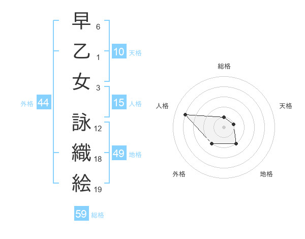 早乙女 詠織絵さんを姓名の画数から五運を鑑定
