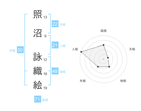 照沼 詠織絵さんを姓名の画数から五運を鑑定