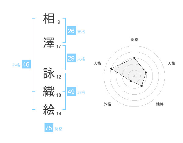 相澤 詠織絵さんの総格は75画の3点