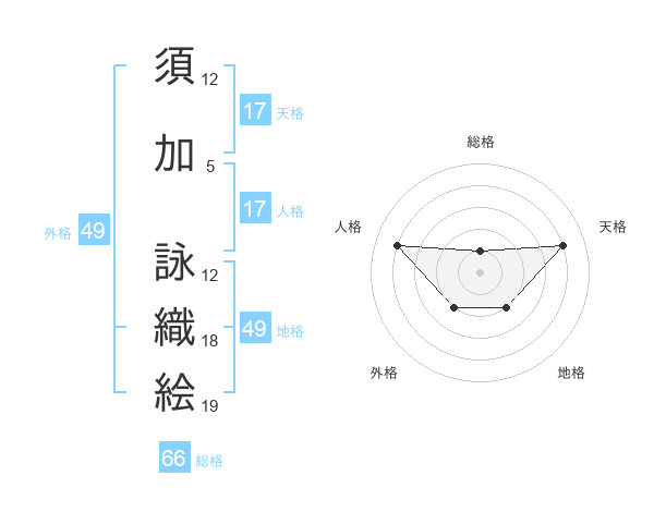 須加 詠織絵さんを姓名の画数から五運を鑑定