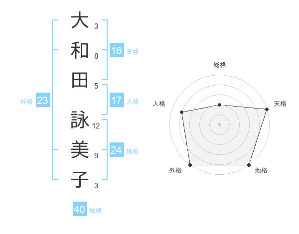 大和田 詠美子さんを姓名の画数から五運を鑑定