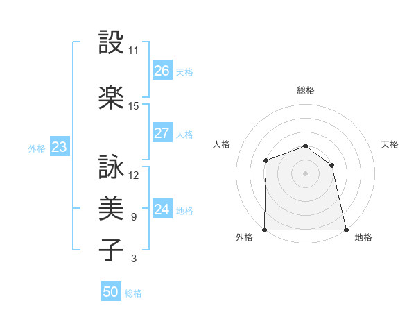 設楽 詠美子さんを姓名の画数から五運を鑑定