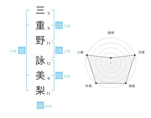 三重野 詠美梨さんを姓名の画数から五運を鑑定