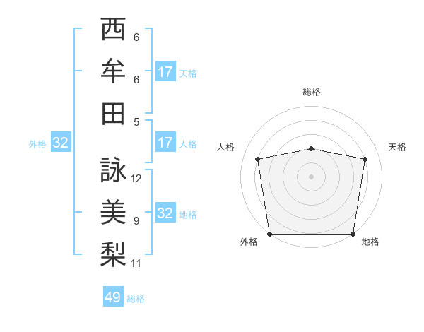 西牟田 詠美梨さんの総格は49画の2点