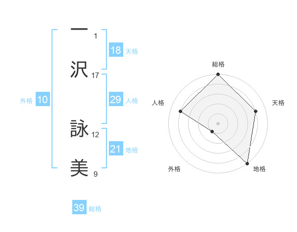 一沢 詠美さんを姓名の画数から五運を鑑定
