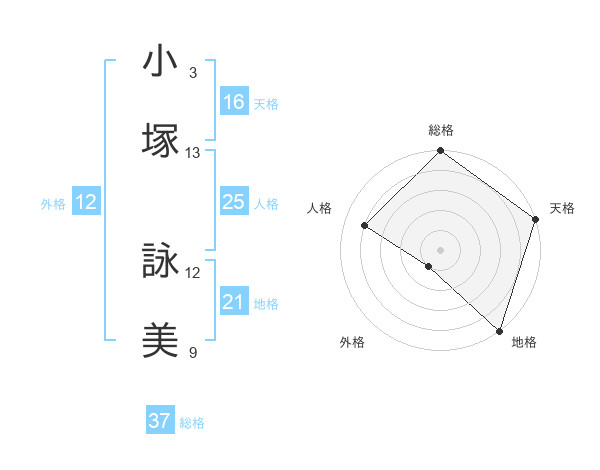 小塚 詠美さんを姓名の画数から五運を鑑定