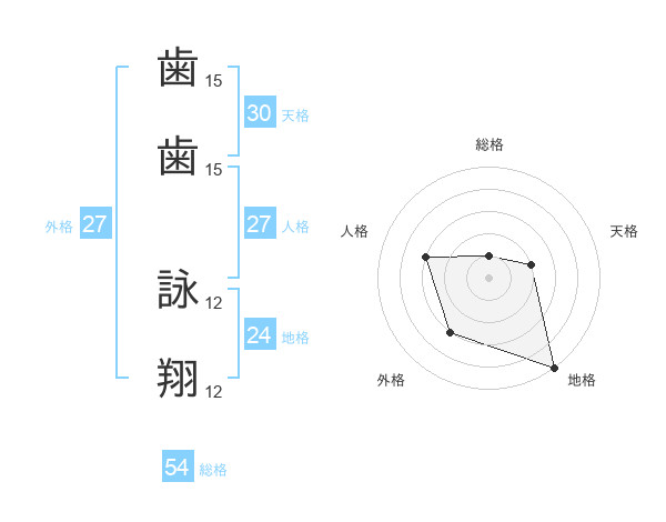 歯歯 詠翔さんの総格は54画の1点!