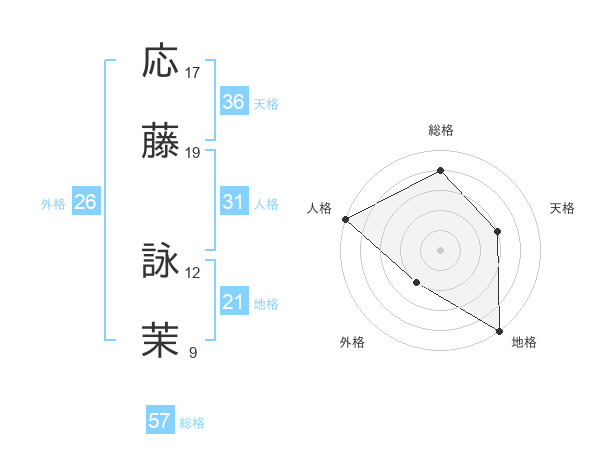 応藤 詠茉さんを姓名の画数から五運を鑑定