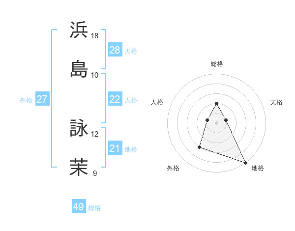 浜島 詠茉さんの総格は49画の2点!